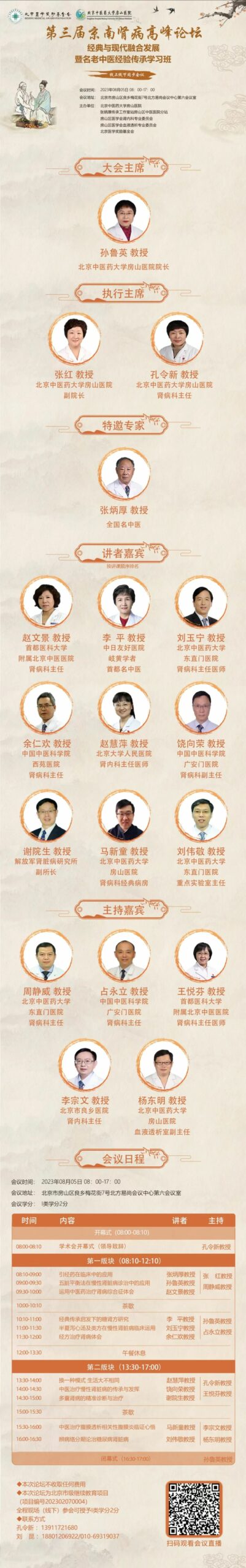 为强化中医特色优势与名医经验传承,推广中西医诊治肾病经验,2023年8月5日北京中医药大学房山医院举办“第三届京南肾病高峰论坛经典与现代融合发展——暨名老中医经验传承学习班”,论坛邀请全国及北京知名肾病专家授课,分享临床诊治经验,帮助广大肾病医生和基层中医人员拓宽视野、开阔思路,提高中医医疗服务、教学、科研等实际问题,推动中医在肾病领域创新发展。欢迎广大医学同仁参会!