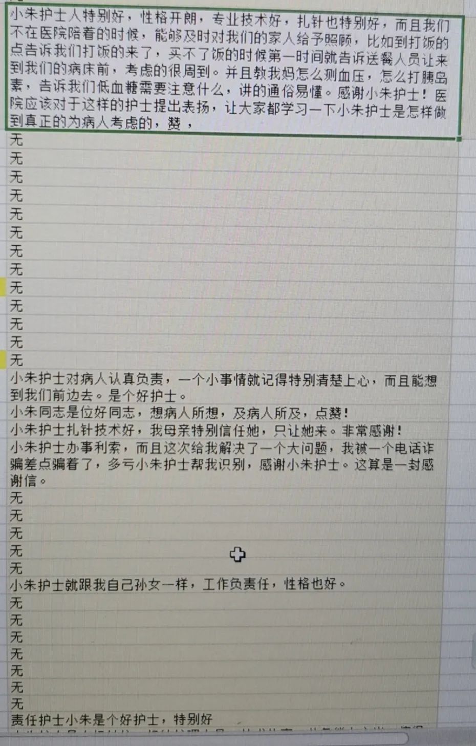 这不又有老人在调查表中写到:住院期间,小朱护士扎针技术特别好,每次都安排“一针见血”,我母亲很信任她,只让她来。