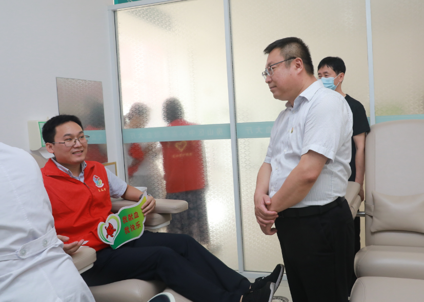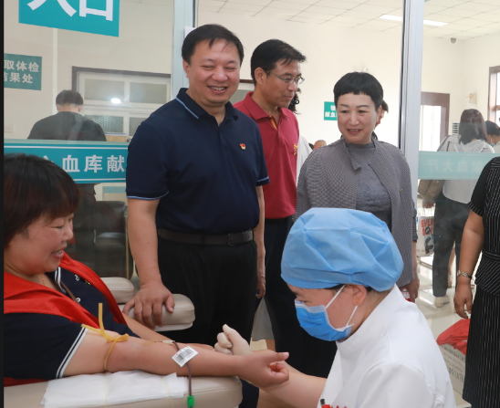 医院党委书记郭书文、党委副书记、纪委书记张士萍、副院长张新荣来到现场代表领导班子对献血志愿者暖心关怀问候;各党支部书记及支部委员积极组织协调献血志愿者,做好保障工作并护送其安全返回。