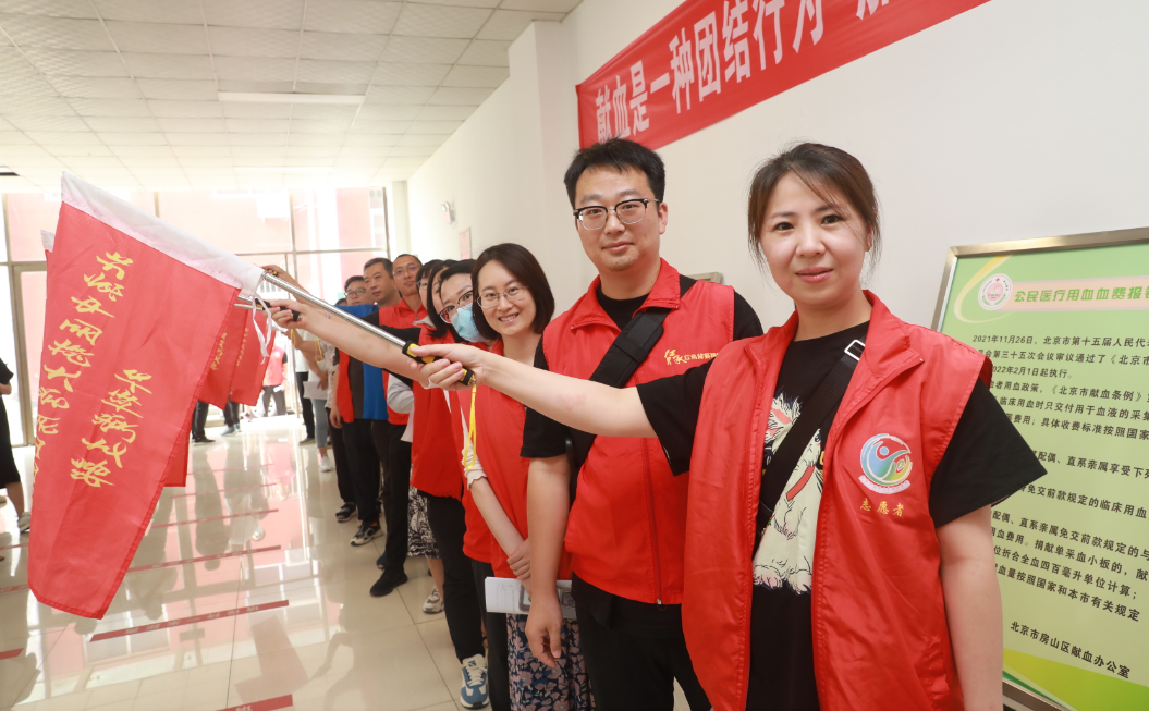 2023年7月26日清晨,北京中医药大学房山医院来自20个党支部的40余名无偿献血志愿者在院领导班子的带领下,整装出发,来到房山区献血办公室一楼献血大厅参加无偿献血活动。