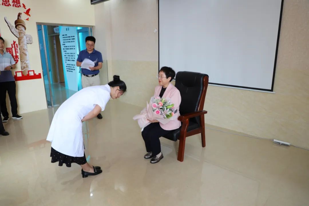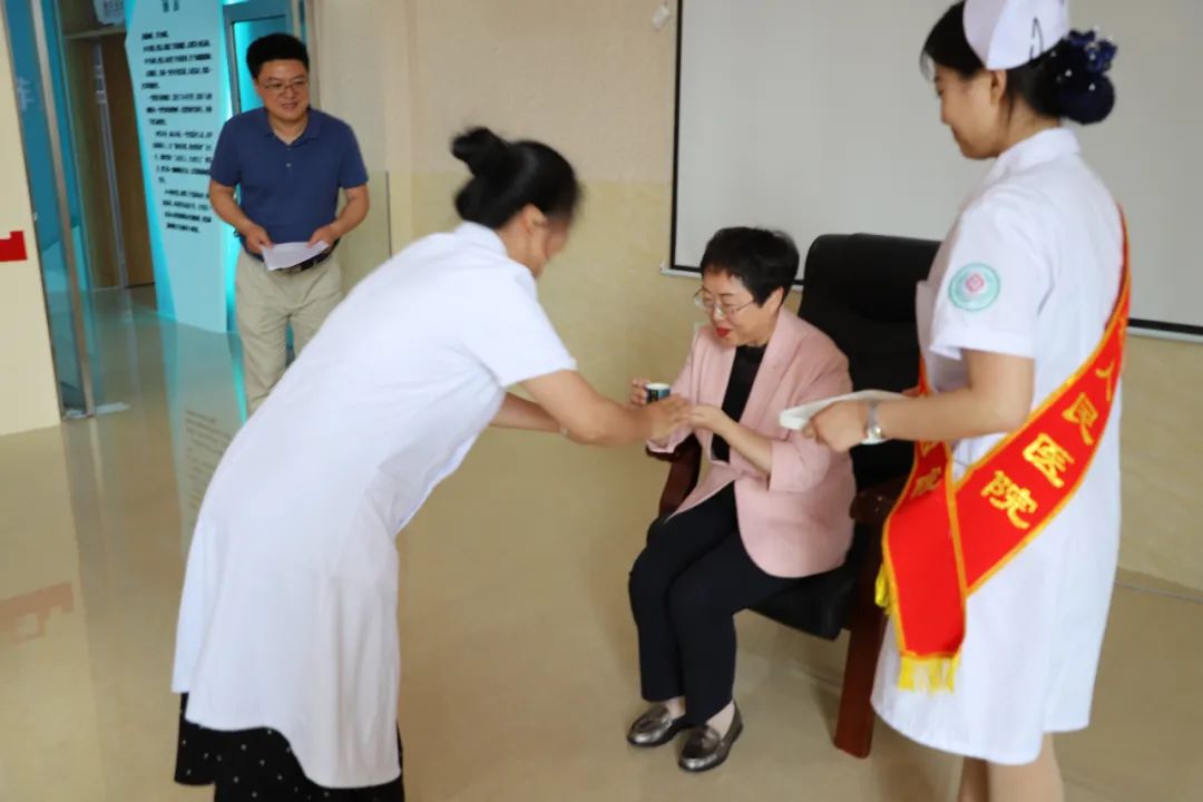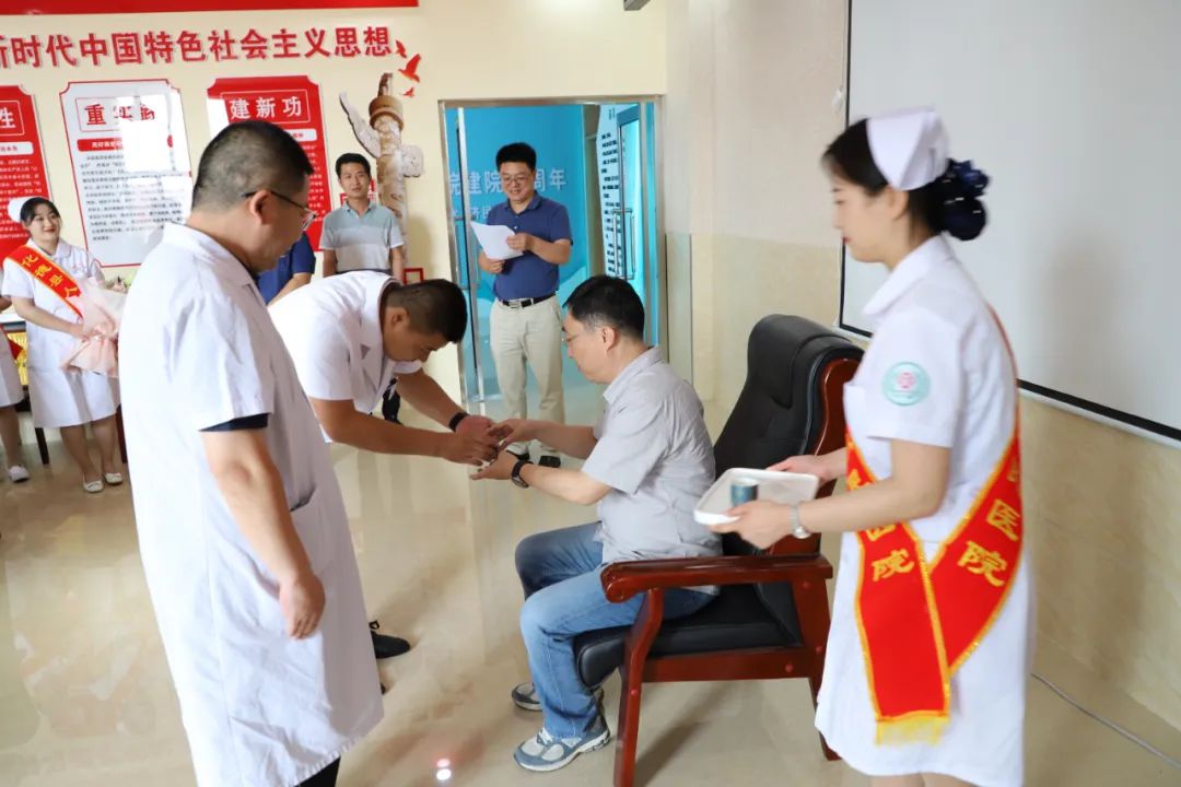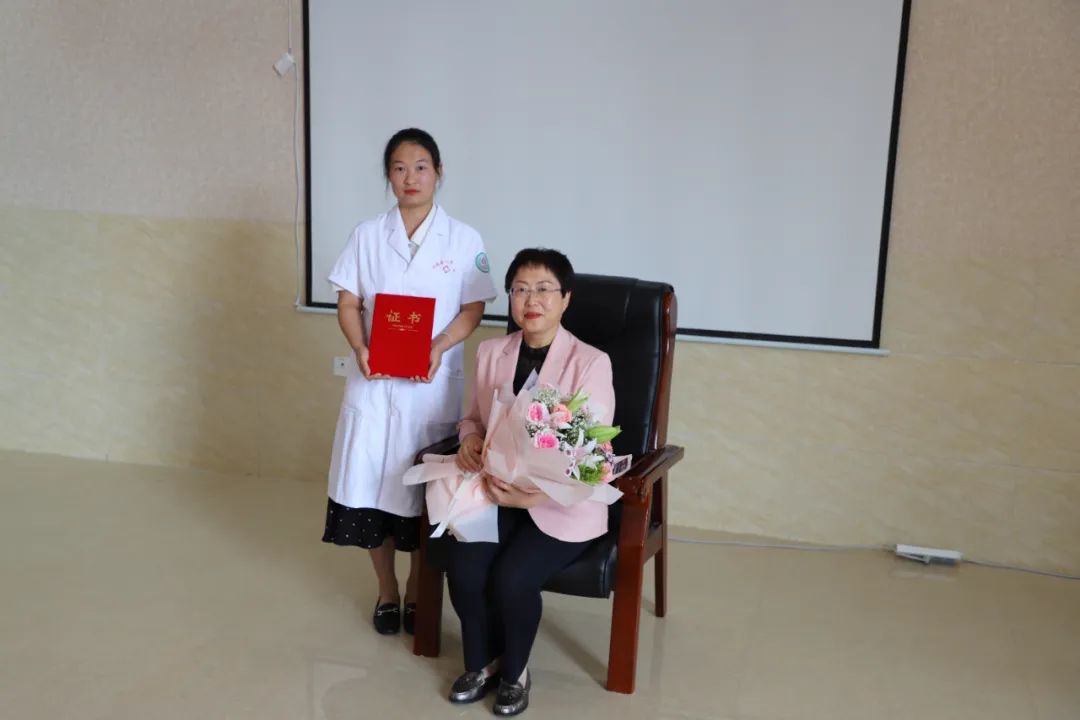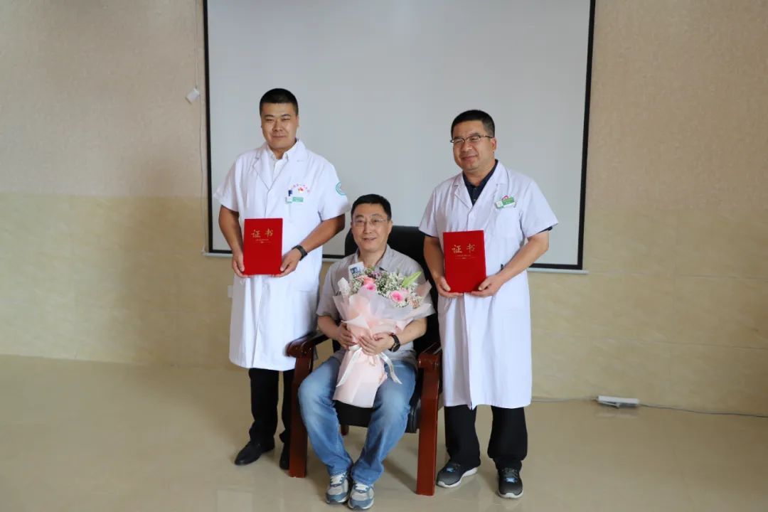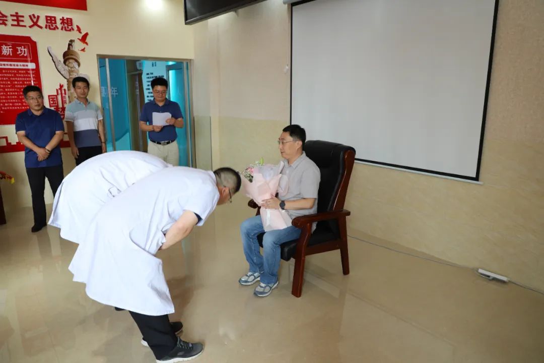收徒仪式上,我院中医科医师王赏、康复科主任陈维、骨科骨干侯耀宇行拜师礼,分别拜入孙鲁英、孟晓东两位教授门下。