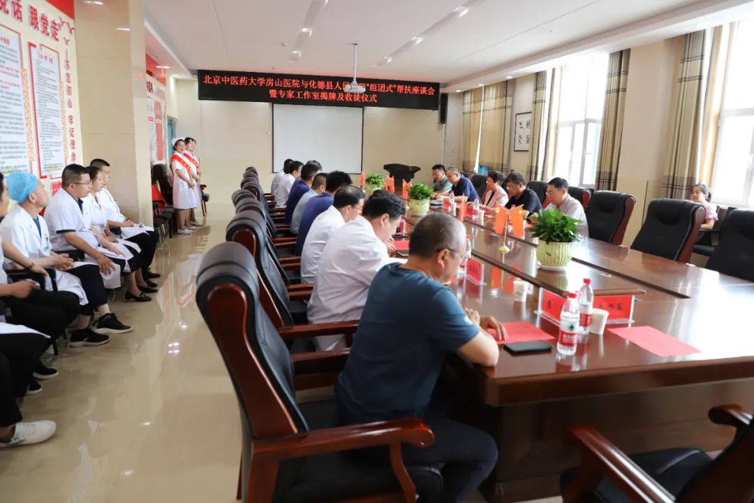 为深化东西部协作,持续推进巩固拓展脱贫攻坚成果同乡村振兴有效衔接,全面落实卫生健康对口支援任务。2023年7月26日下午,北京中医药大学房山医院院长孙鲁英、副院长杨景柳、傅春江、医务科副科长吕英华、疼痛康复科主任孟晓东一行到我院开展“组团式”帮扶座谈会,我县卫健委主任贾永杰、我院党支部书记李海军、院长李有、副院长刘贵祥、李普教、荆屹、李鹏及“组团式”帮扶专家出席座谈会。