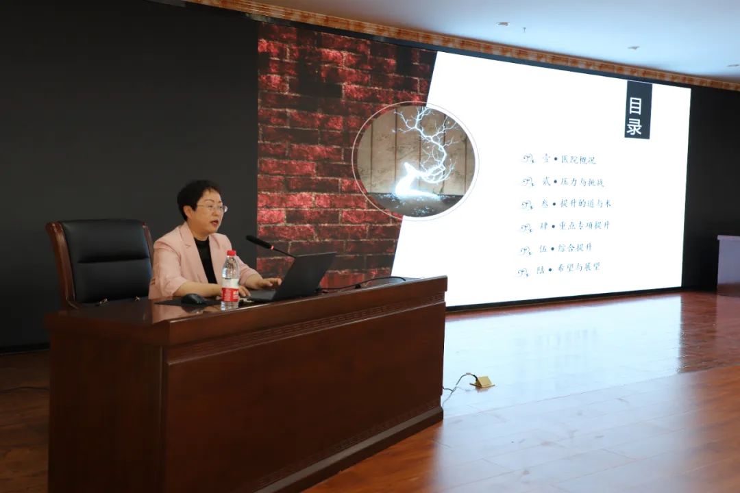 会后,我院邀请孙鲁英教授在康复综合楼四楼会议室为全院职工开展《县级医院绩效考核——如何提升国考指标》专题讲座。孙鲁英教授从医院管理框架、发展战略、难点提升、面临的挑战及未来的前景等各方面,为我院全体职工做了细致讲解,让全院职工对于医院发展和个人职业规划有了更加清晰的认识。