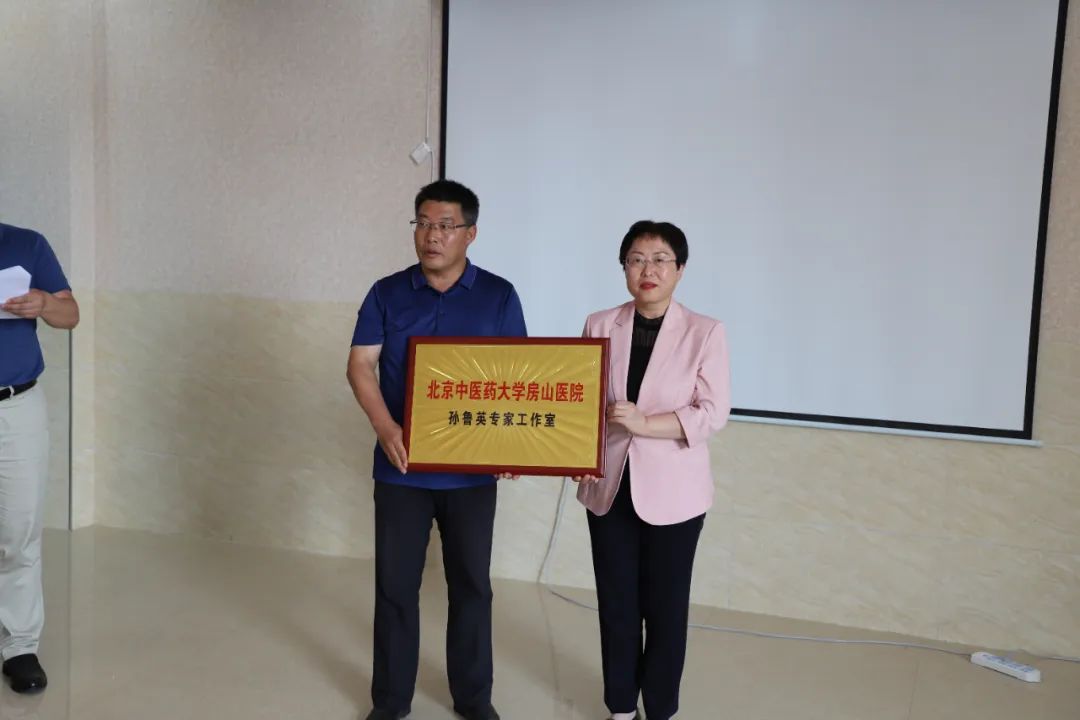 贾永杰为孙鲁英授予聘书,共同为“孙鲁英专家工作室”揭牌。