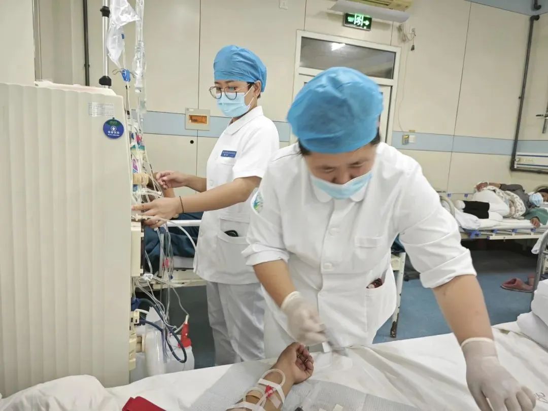 △良乡医院血液透析中心医护人员为患者进行透析治疗。