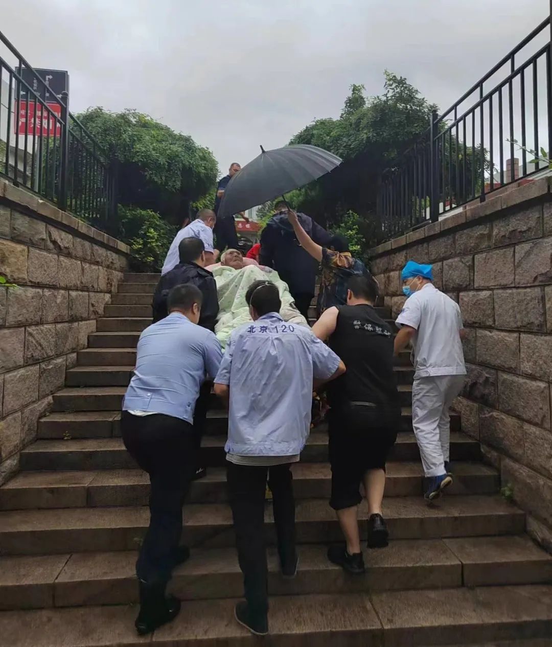 在二十余公里外的昌平区阳坊镇,一场场紧急救援在雨中上演。7月31日15时许,大雨瓢泼,昌平区阳坊社区卫生服务中心120急救站值班医生李慧、护士王旭收到调度通知,阳坊镇后白虎涧村一位摔伤患者情况危急,急需就医。