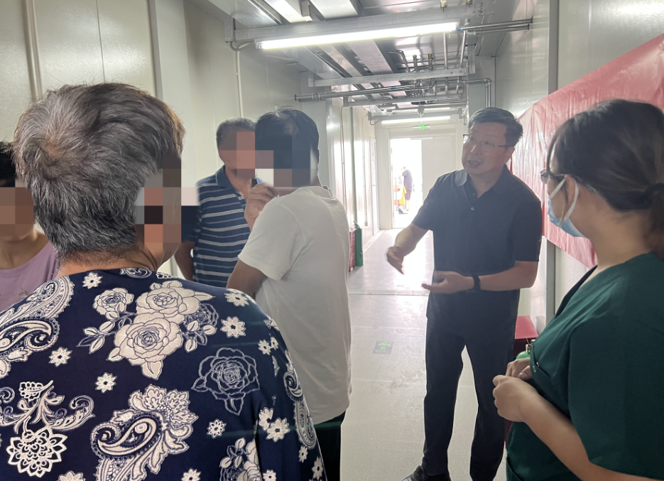 由于临时医院的筹备需要协调各方面的工作,毛院长忙完手头紧要的工作已是深夜12点以后,当听到值班医生说有一位当天去医院就医后返回安置点的一名心衰患者时,毛院长亲自带领值班医生到床旁查看病人,询问病情,告知患者家属不适随时和值班医生联系,巡视完病人后,对值班医生再三叮嘱,要重点关注有特殊疾病和慢性病的老年患者,同时做好传染病相关防控,交代完相关事宜,离开办公室时已经凌晨一点多了。