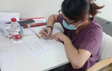 医疗队到的第二天晚上,刘恋护士夜班接诊一名发热、喘憋的老年患者,经值班医生评估后需要转医院就诊,刘恋护士和值班医生联系120护送患者到北京友谊医院就诊,送完患者回来已是凌晨,刘恋护士继续夜班的值守工作。