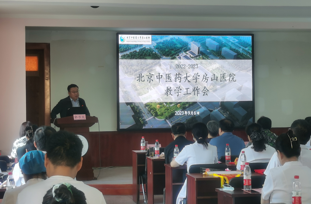 秋风送爽,天高云淡,金秋九月,正值第39个教师节来临之际,2023年9月6日,北京中医药大学房山医院举办了2022-2023年度教学工作会。北京中医药大学教务处处长闫永红、医院党委书记郭书文、院长孙鲁英、院领导班子成员以及各教研室(组)教学主任、教学秘书、临床教师、教学管理人员、规培学员等共百余人参加了此次会议。会议由科教科副科长白晓旭主持。