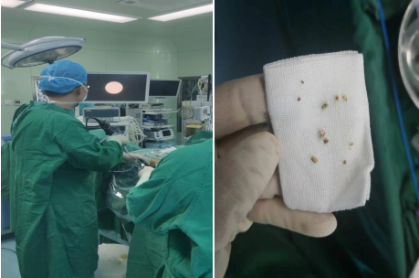 患者“右侧输尿管结石”梗阻时间长、“腰痛、血尿”症状明显、手术需求迫切,我院泌尿外科崔克主任带领团队对其病情进行认真的分析讨论,本着“安全、有效、精准、快速康复”的原则,摒弃术前常规7天置管,为患者制定了“左侧一期输尿管软镜激光碎石取石+右侧输尿管硬镜激光碎石取石术”的手术方式。并在麻醉科毛文艳主任团队的鼎力协作下,于入院第3天顺利完成手术,于入院第7天出院。大大缩短住院时间、减少住院费用,为患者解决了困扰多年的烦恼。患者及家属对我院泌尿外科、麻醉科先进的诊疗技术及医护精湛的技术赞不绝口。