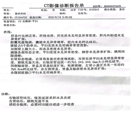 隗先生患“泌尿系结石”已4年余,常被“腰痛、血尿”折磨,苦不堪言。10余天前,患者再次出现“腰痛、血尿”症状,于朝阳区某医院诊断为:左肾结石、右侧输尿管下段结石,给予体外冲击波碎石治疗后症状缓解不明显,遂来我科门诊就诊,建议住院手术治疗。