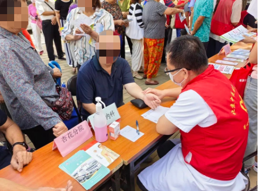 此次义诊人次49人,测血压50人,测血糖50人,穴位贴敷4人,共计发放各类宣传资料约66份。