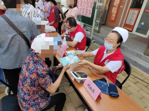 上午九点,杏花分院的医护人员来到迎风四里居委会,开始义诊活动。居民们有序地排起了长队。中医医生给居民把脉问诊,了解其健康状态,指导其饮食起居和合理用药。对于居民在健康问题上提出的疑问,给予专业的治疗方案。其他医务工作者为居民免费测量血压、测血糖、穴位贴敷、发放健康宣传资料、宣传推广中医适宜技术。