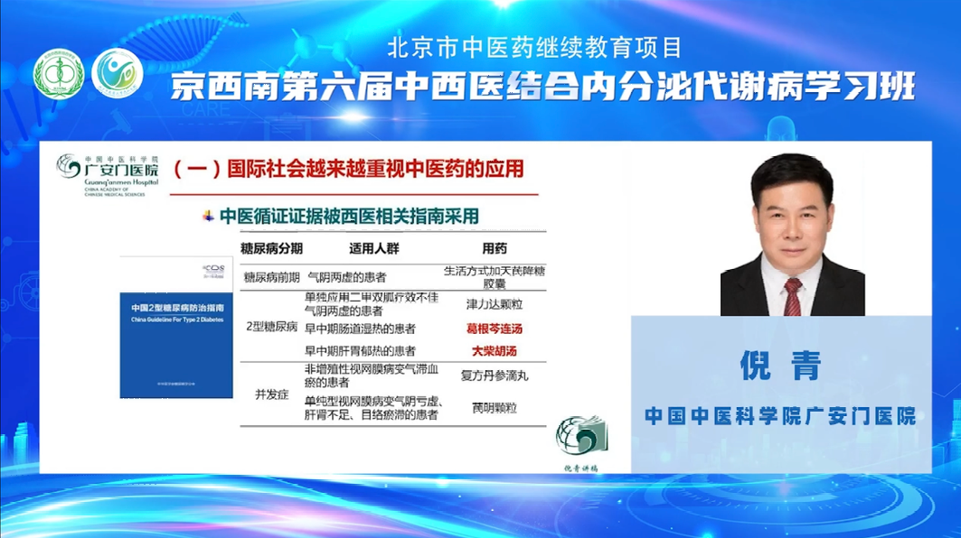 “突出贡献中青年专家”、享有国务院“政府特殊津贴”的中国中医科学院广安门医院内分泌学学科带头人倪青教授带来《糖尿病中医药治疗:理论和实践》的精彩讲述。