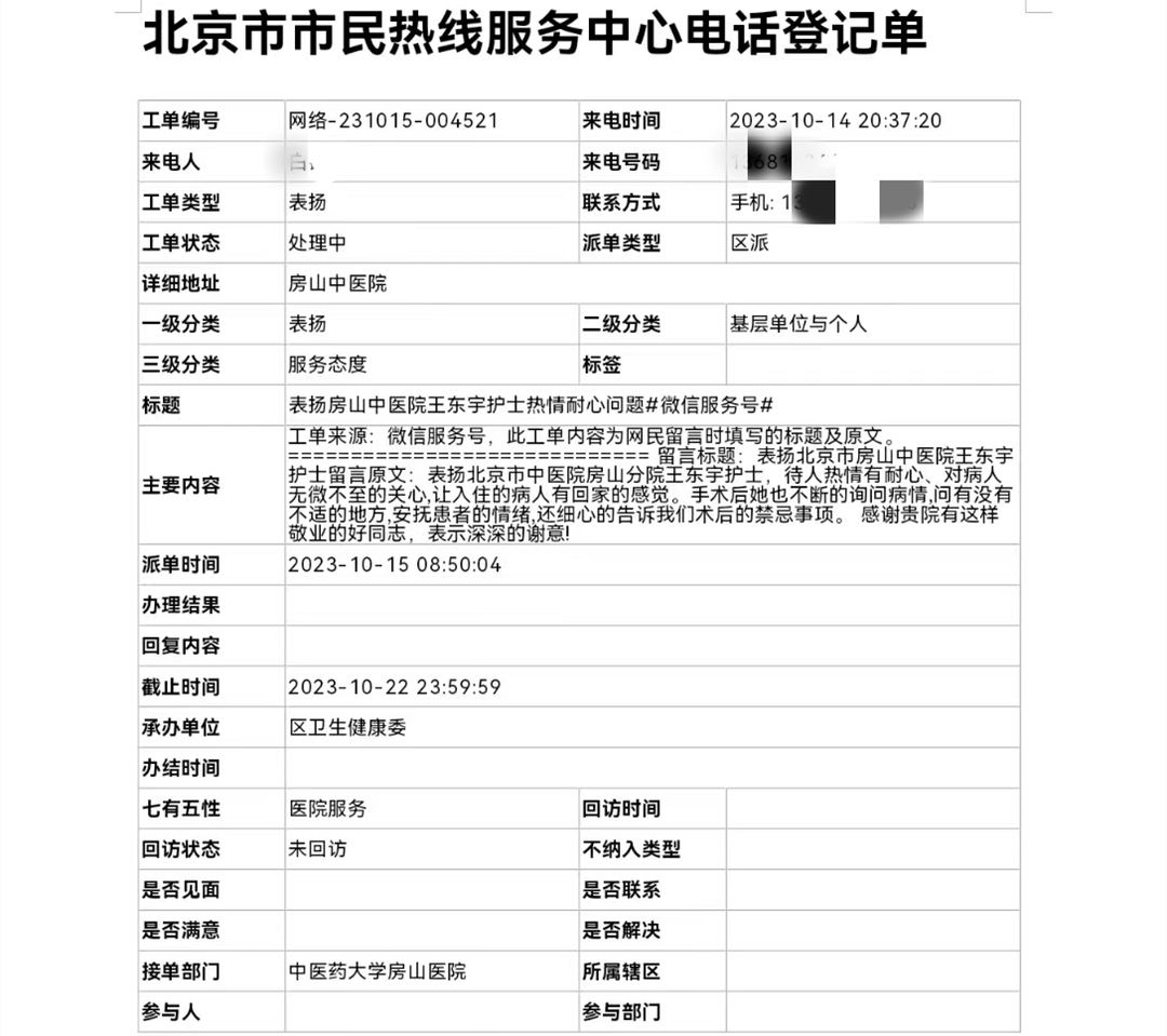 近日,北京中医药大学房山医院肛肠科医护人员接连收到锦旗和12345电话表扬,每一次肯定的背后都是一个个感人肺腑的故事。