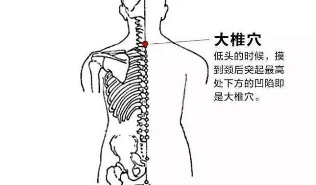 推拿大椎穴:大椎穴是人体诸阳汇聚的穴位,处于阳中之阳位,推拿大椎穴能够帮助所有阳经的防御功能振奋起来。