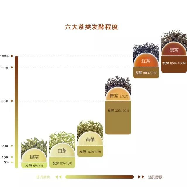 六大茶类的划分基础是茶叶发酵的不同程度。发酵程度越高,茶性越温和,比如红茶、黑茶;相反,不发酵或是轻度发酵,茶性微寒。