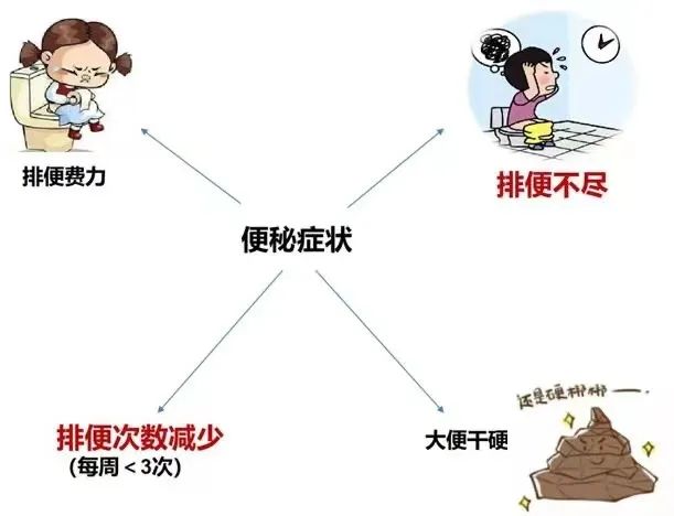 排便次数减少指每周排便少于3次。慢性便秘的病程至少为6个月。大部分患者没有得到规范的诊断和治疗。