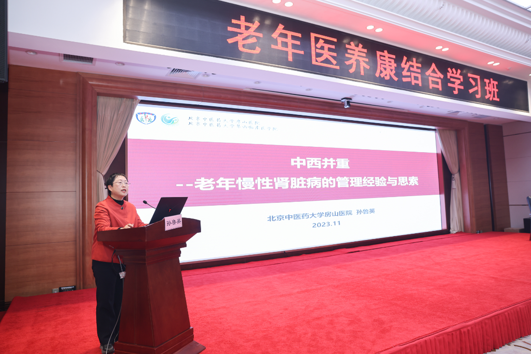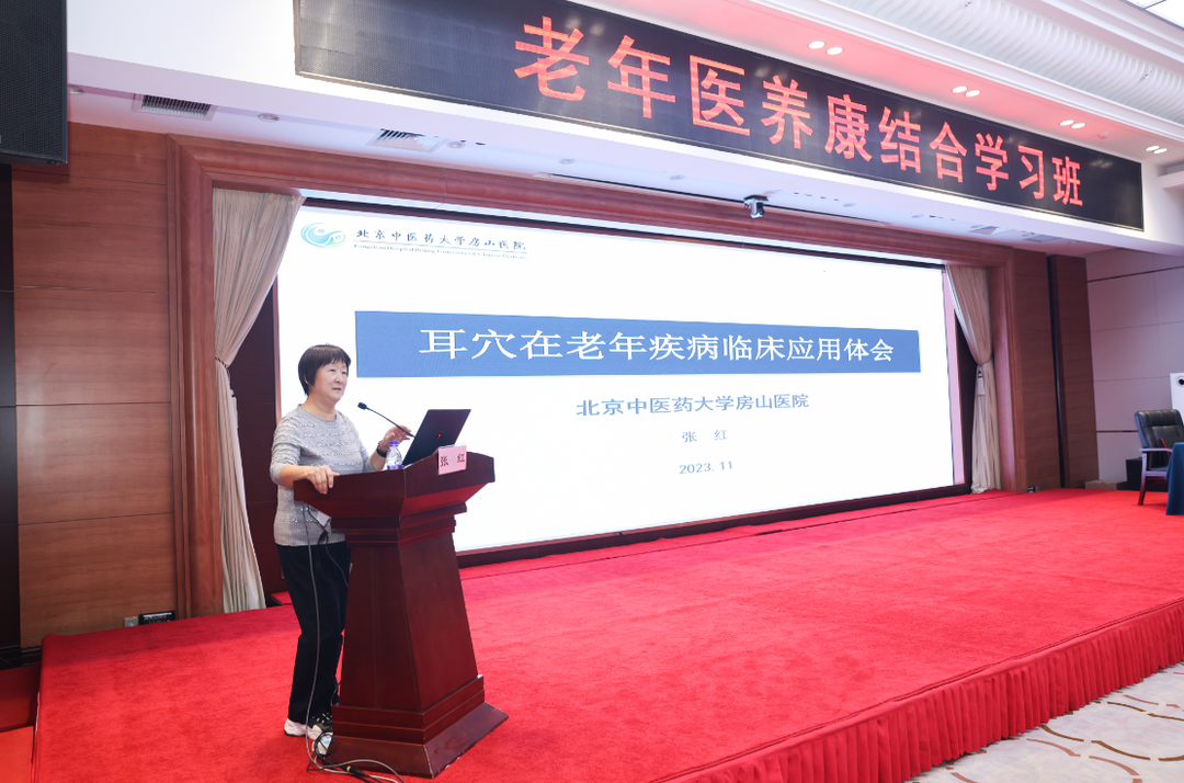 北京中西医结合学会老年医学专业委员会主任委员、北京中医药大学房山医院院长孙鲁英教授为学习班开幕式致辞并讲授了“中西并重–老年慢性肾脏病的管理经验与思索”,北京中西医结合学会老年医学专业委员会副主任委员、北京中医药大学房山医院副院长张红教授主持并讲授了“耳穴在老年疾病临床应用体会”。