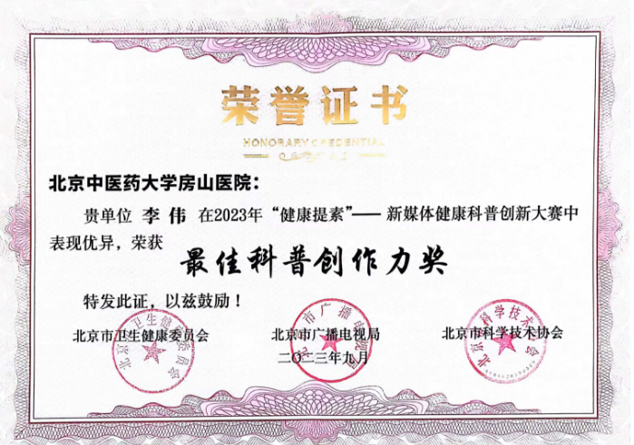 恭喜北京中医药大学房山医院在“2023年“健康提素”——新媒体健康科普创新大赛”及“2023年北京健康科普作品评选活动”中获得多个奖项!