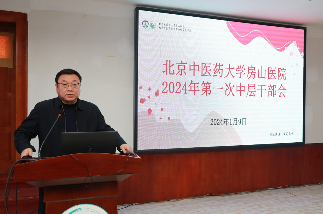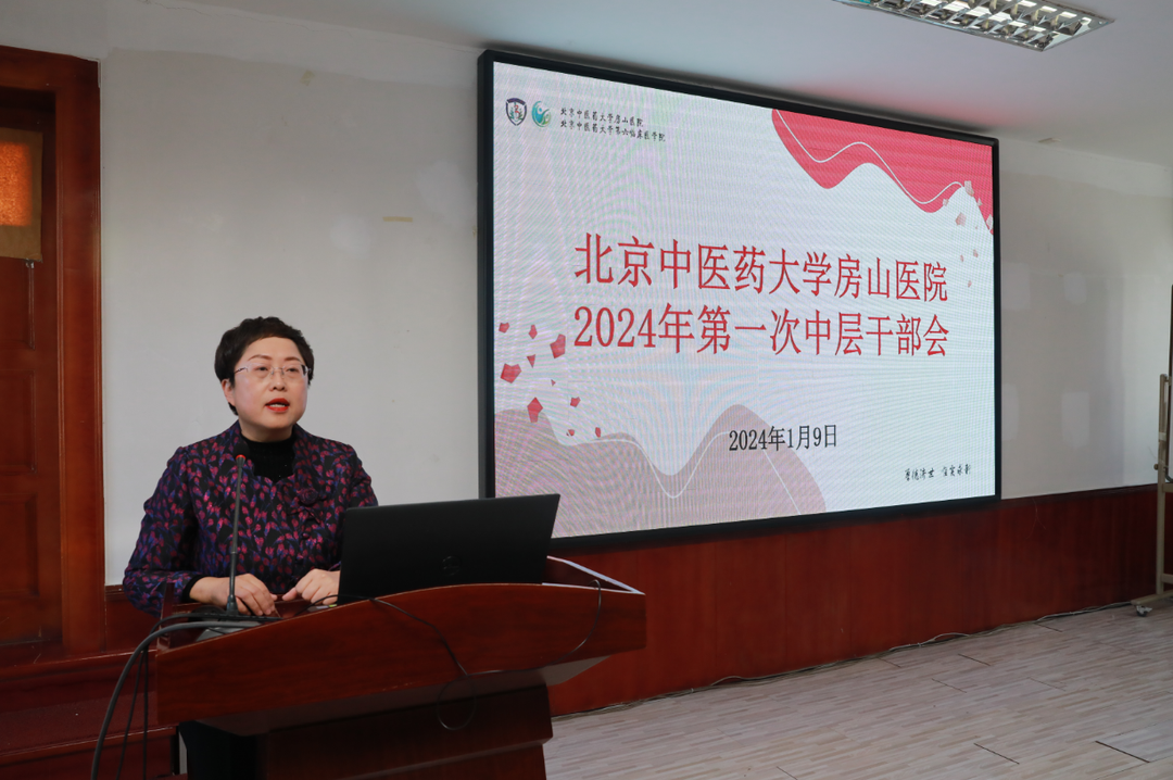 新年伊始,励精图治。2024年1月9日,北京中医药大学房山医院召开了2024年第一次中层干部会,医院领导班子成员及中层干部百余人参加,会议由院长孙鲁英主持。