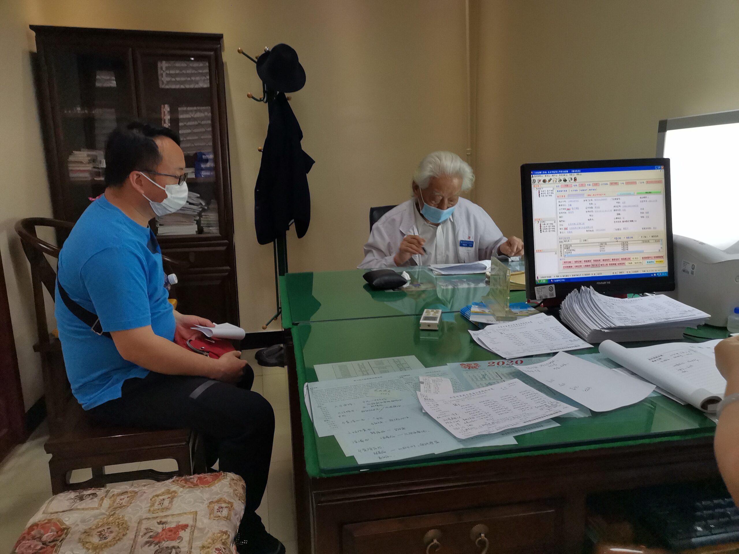 在具有浓厚古典中式风格的结石科诊室里,坐满了各地求医的患者。92 岁高龄的韩臣子精神矍铄,一头鹤发整齐利落,正在为患者诊脉。他思维敏捷,记忆力极好,见到复诊患者,虽时隔多日,总能准确地说出患者的情况,老熟人一般地说起患者的病情。