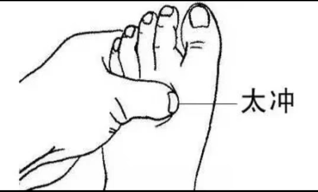 定位:属足厥阴肝经。太冲穴在足部背侧,第1、2跖骨间,跖骨底结合部前方凹陷中,或触及动脉搏动处。