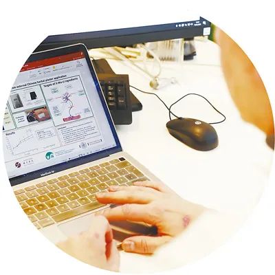 德国中医药专家、汉堡大学附属埃彭多夫医院汉萨美安中医中心主任斯文·施罗德展示该中心与上海中医药大学附属曙光医院的联合科研项目“中医药在延缓渐冻症发展中的临床表现”。
