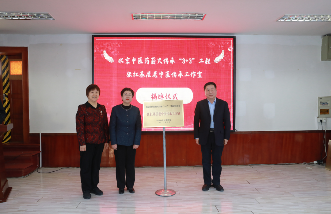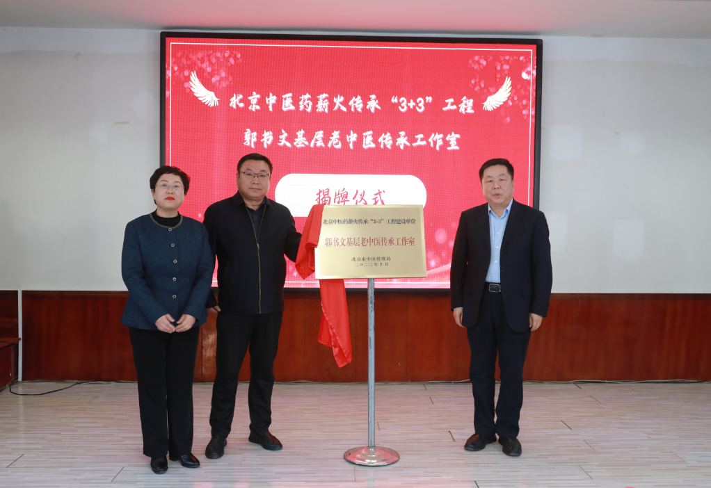 随后举行了郭书文、张红基层老中医传承工作室的揭牌仪式,这标志着北京中医药薪火传承“3+3”工程基层老中医传承工作的开启。