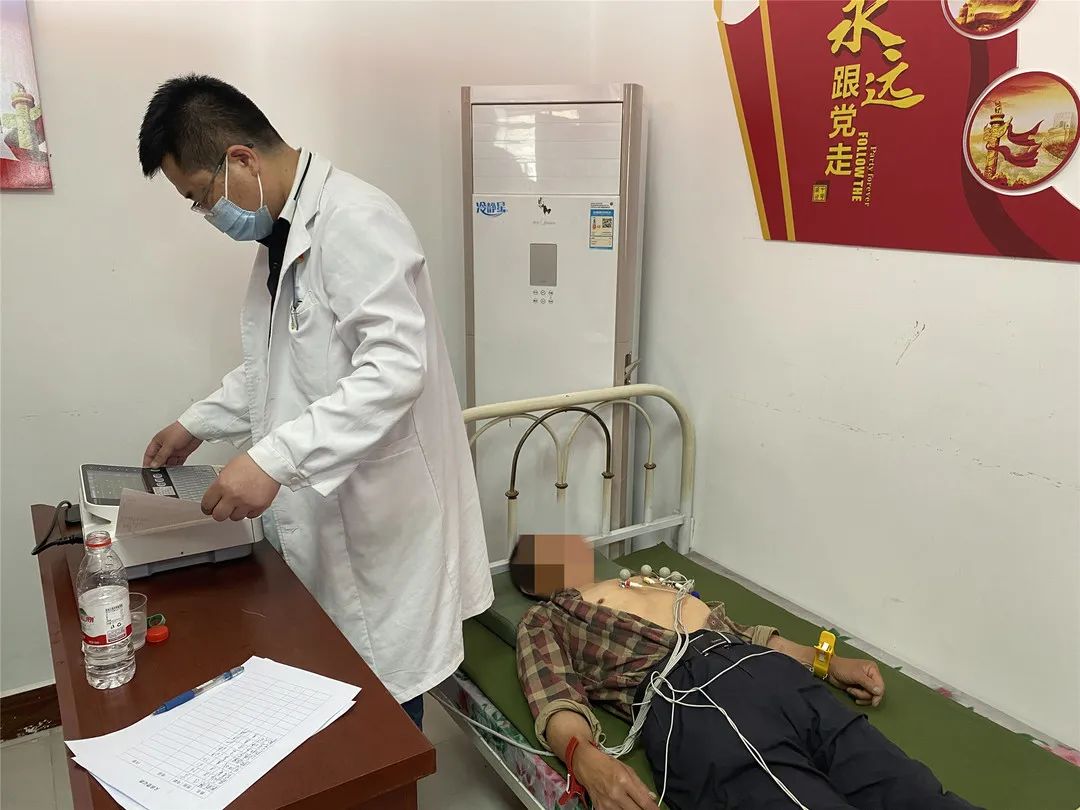 肺病科曹永辉副主任医师为患者做心电图检查。