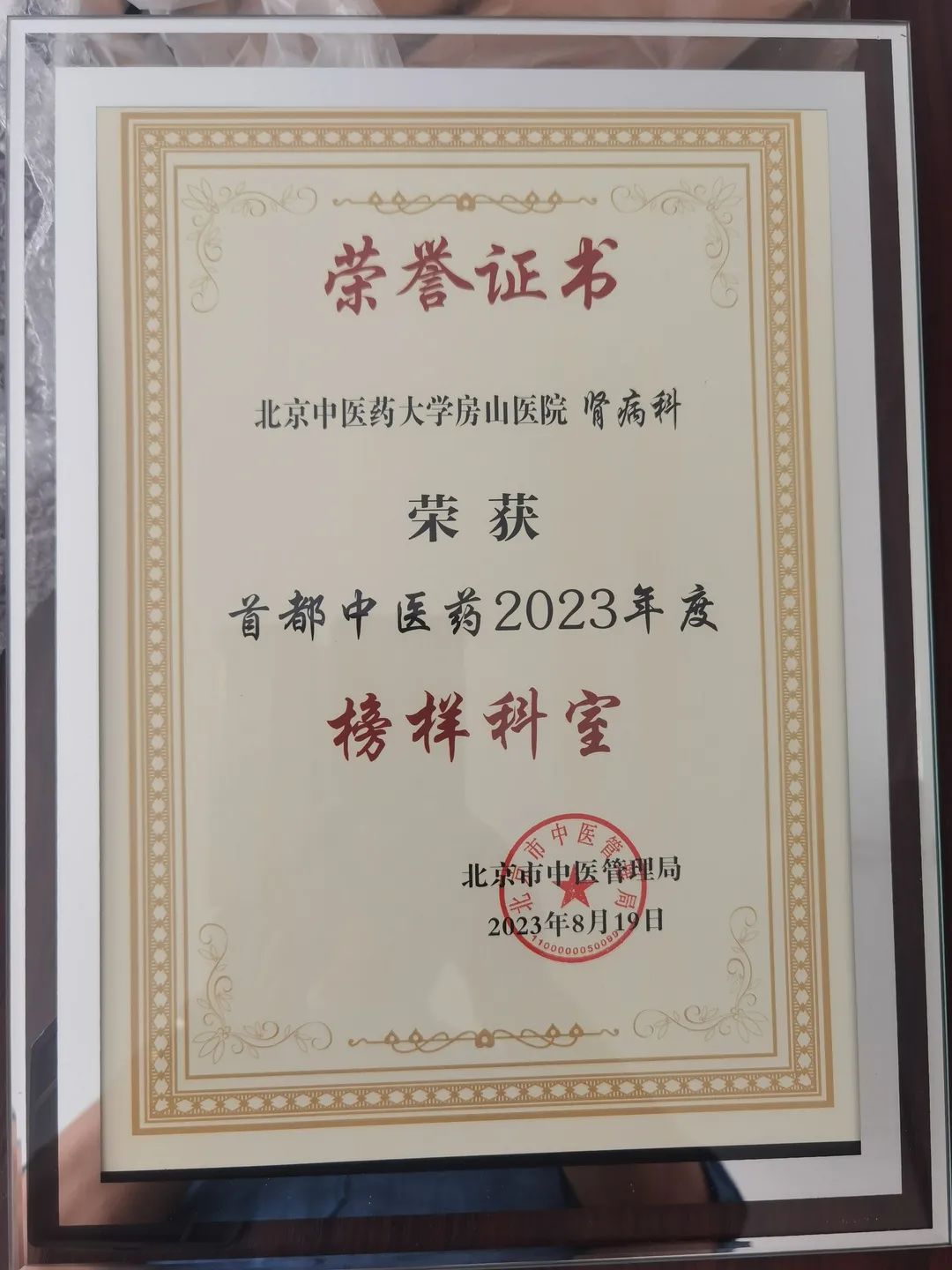 北京中医药大学房山医院肾病科成立于2003年,孙鲁英院长任学术带头人,孔令新主任医师任学科负责人,北京中医药大学临床特聘专家马新童教授担任指导老师,中高级职称27人,其中博士2人,硕士6人。在孙鲁英院长带领下科室不断提升,取得优异成绩。现为北京市“十四五”首批中医药市级重点专科、房山区肾内科与血液净化质量控制和改进中心、房山区肾内科专业委员会、血液透析专业委员会主任委员单位、张炳厚名老中医工作室分站,国家资格认证药学临床试验专业科室。2023年荣获“首都中医药榜样科室”,2024年入选“国家中医优势专科建设单位”。