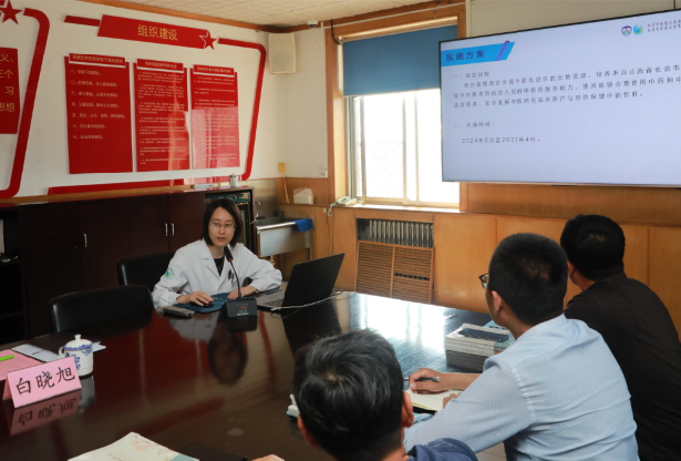 北京中医药大学房山医院科教科副科长白晓旭对本次“山西省沁县西学中培训班”的实施方案进行了详细介绍,涵盖项目目标、实施时间、项目内容、组织实施、监督管理等方面。