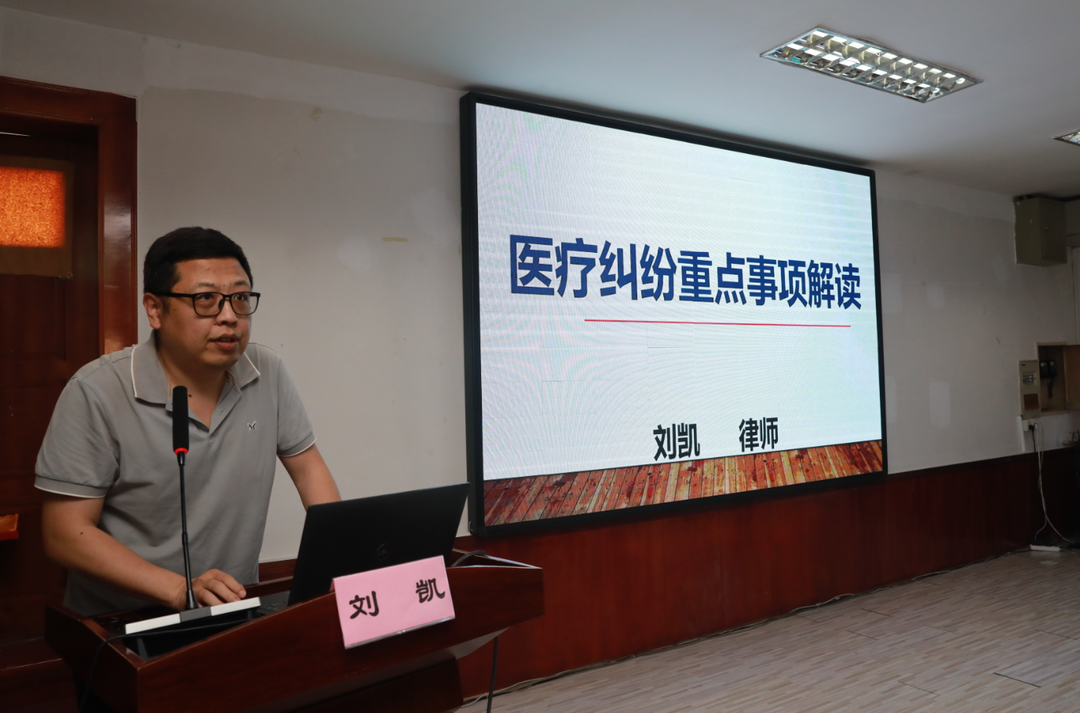首先,医院特邀刘凯律师开展《医疗纠纷重点事项解读》培训,从风险、风险社会和法律风险、医疗纠纷中的风险分配、病历书写、告知事项及目的四个部分,详细剖析工作中经常遇见的法律问题,引导职工正确认识“病历”法律因果问题,增强法律红线意识,尽心尽力履行医务人员救治义务,深化“以患者为中心”的救治理念。