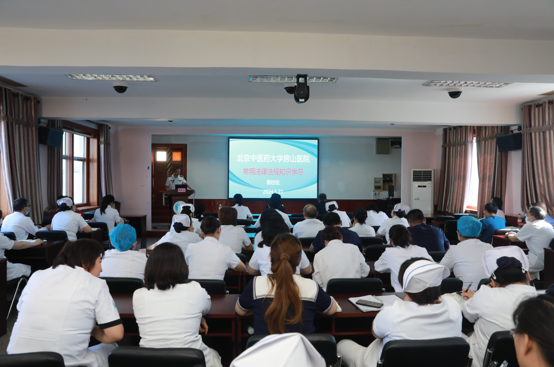 为深入学习贯彻习近平总书记全面依法治国理念,大力弘扬和宣传法制精神,落实北京市卫生健康系统法治宣传教育第八个五年规划,进一步在职工中普及法律法规知识,切实提高干部职工法治素养和依法办事的水平,2024年5月21日下午,北京中医药大学房山医院在西二楼会议室开展职工法律法规专项培训,医院领导班子及中层干部80余人参加。