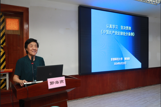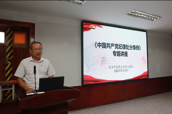 按照《北京中医药大学房山医院党委关于在全院开展党纪学习教育的工作安排》要求,5月23日下午,在西二楼会议室,北京中医药大学房山医院党委举办《中国共产党纪律处分条例》专题讲座,特邀首都师范大学教授郭海燕授课,医院党政领导班子成员、纪委委员、党支部书记、支委、科室负责人90人参加。会议由纪委书记程志舫主持。