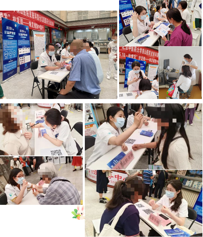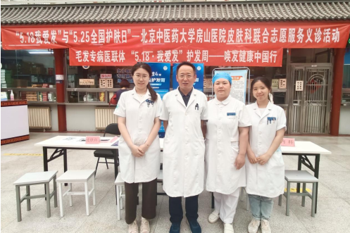 初夏来临,在缤纷的五月天,北京中医药大学房山医院皮肤科、门诊党支部在医院门诊大厅举办联合义诊活动。此次义诊响应国家中西医结合医学中心 “5.18.护发周”及中国医师协会“5.25全国护肤日”的号召,为提升民众对毛发健康、皮肤问题的重视,科学传播正确的毛发、皮肤健康知识,向公众提供免费的咨询、检查及科学指导。