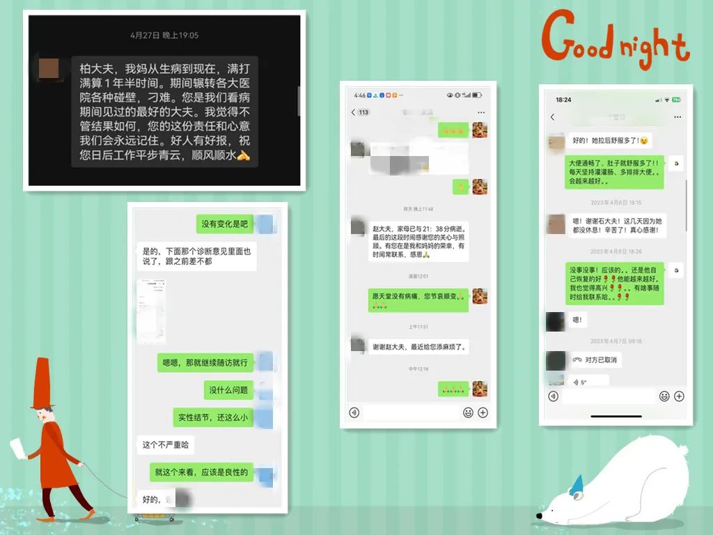 安阿姨是一位胆囊癌晚期的患者,辗转市内各大医院。用患者家属的话说”从生病到现在,一年半的时间,各种碰壁……”但是她最后选择了房山区中医医院肿瘤科。在这里,医护人员给了她精心的治疗,在她生命的最后阶段给予她尊严和温暖的照顾。她的家属在给主管医生柏大鹏的微信中说”您是我们看病期间见过的最好的大夫,不管结果如何,您的这份责任和心意我们会永远记住。”