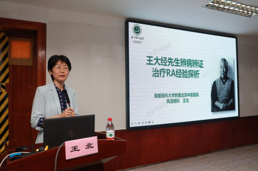 王北教授向大家介绍了王大经先生的学术思想,特别介绍了王大经先生治疗类风湿关节炎的诊治经验,强调了中医辨病的重要性,王大经先生闻鸡起舞、力争创新的精神令人印象深刻,值得吾辈学习 。