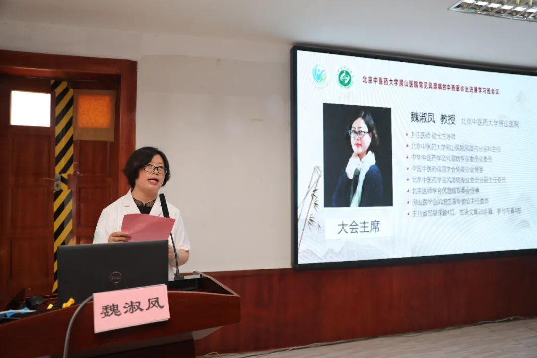 大会由北京中医药大学房山医院风湿病科主任魏淑凤主持,魏主任首先强调了此次学习班目的:第一、让风湿病专业人员更加夯实常见风湿病的中西医诊治基础,掌握前沿,传承名老中医的学术思想;第二、风湿病是唯一不以系统命名的疾病,因为它的发病可以涉及到周身各个系统,在各个专业都会接触到风湿病患者,所以此次会议的目的让非风湿病专业人员能够进一步认识和了解风湿病,避免误诊误治;第三、很多疑难危重患者往往最终诊断都是风湿性疾病,只有打好基础,才能更好的诊治疑难疾病;第四、风湿病的治疗在中医治疗方面有很好的治疗优势,能够达到治病求本的作用,加上现代医学的辅助,做到中西贯通,中主西随的治疗目的。