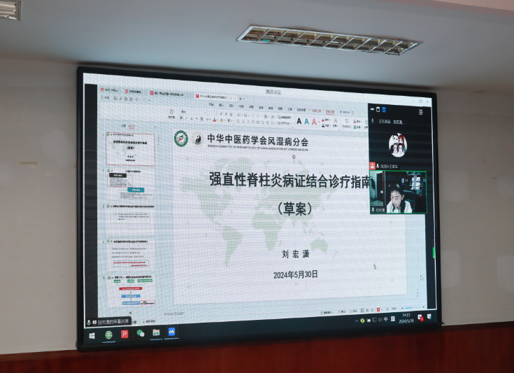 刘宏潇教授以强直性脊柱炎面临的实际临床问题为切入点,讲授了强直性脊柱炎病证结合诊疗指南,融汇中西医治疗进展。