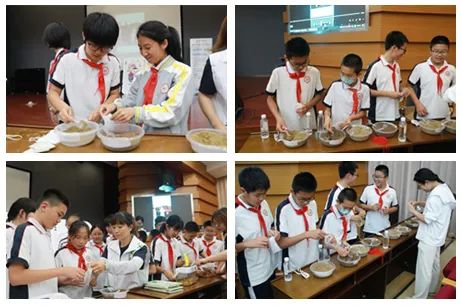 第三个环节——香愿快乐心语,同学们自己动手装香囊,希望具有安神助眠、醒脑解郁作用的香囊能够缓解他们的学习压力,或者系上祝福卡,赠送给家人、朋友、老师,表达他们的感恩之情。