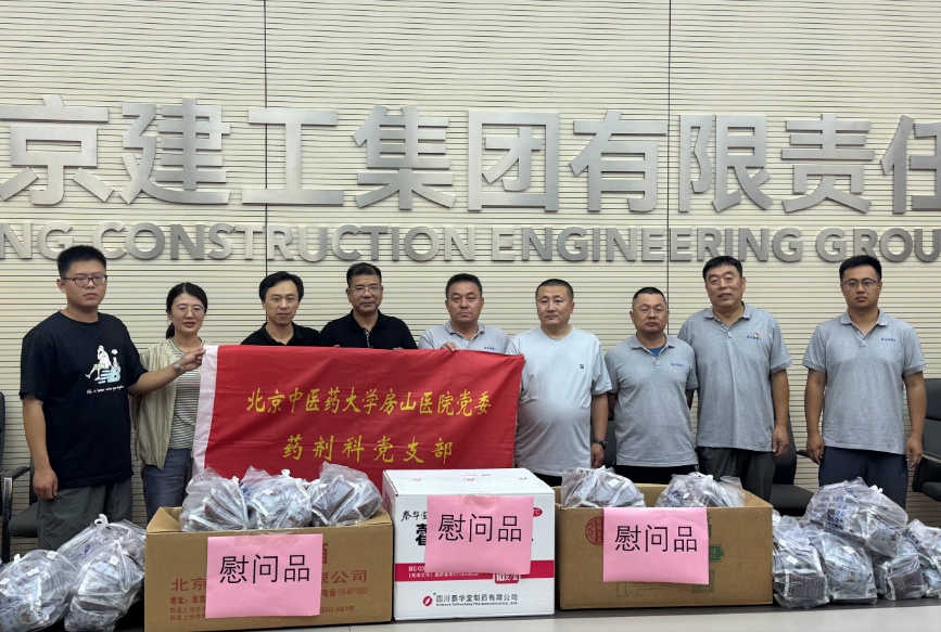 6月7日下午,在医院党委委员、副院长、工会主席杨景柳的带领下,药剂科党支部赴新院区建设工地开展了“心系新院区,夏日送清凉”主题党日活动。又到了一年中的酷暑时节,药剂科党支部为炎炎夏日奋战在新院区建设一线的工友们送来了藿香正气水、自制酸梅汤等防暑降温物品,同时为大家带来了具有芳香化湿、驱邪避秽的香囊,为工友们送去端午的关怀和祝福。