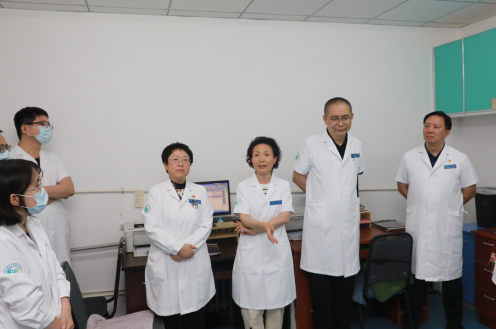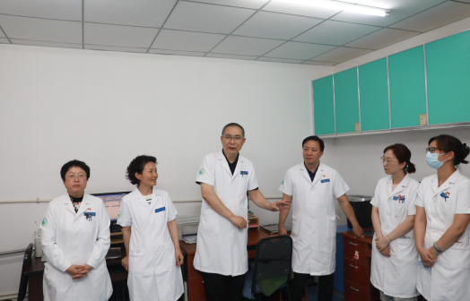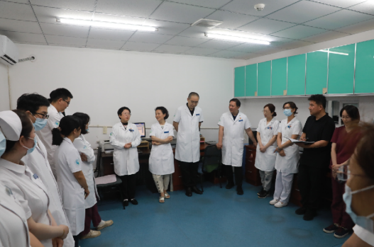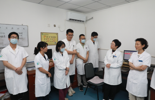 6月13日下午,北京中医药大学房山医院院长孙鲁英带领副院长傅春江、张新荣,“人才京郊行”灾后恢复重建专项服务专家北京天坛医院神经肿瘤综合治疗病区主任医师、教授、博士生导师陈峰,以及部分行政职能科室负责人,来到肿瘤科开展院长行政业务一体化查房,对科室未来发展及日常工作中存在的问题和困难进行了现场沟通和解决。