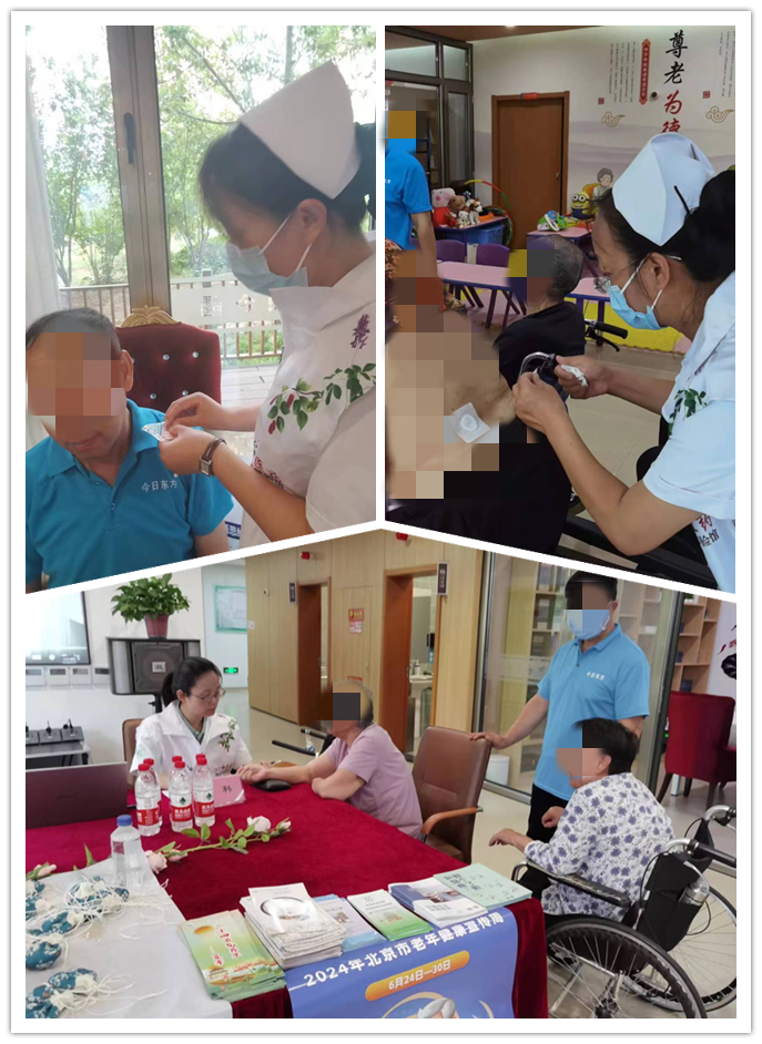 内科医师为老人提供健康咨询,了解他们的健康状况并指导其在日常生活中合理使用常见中成药。对失眠、关节疼痛等老年人常见健康问题,护理门诊专科护士辨证后进行了有针对性的穴位贴敷、耳穴压豆治疗,并宣教了耳部穴位保健知识。