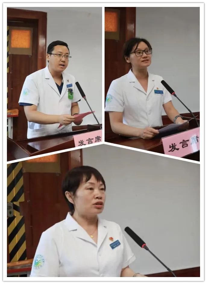 荣获优秀共产党员代表康利高阁同志、优秀党务工作者代表代阿秋同志、先进党支部代表程红杰同志作了典型发言。表示要在医院党委的领导下,围绕医院年度“工作方针、十大任务”,践行“患者至上 生命至上”的服务理念,真正体现出新时代优秀医务工作者的风采。
