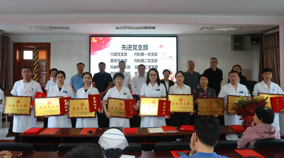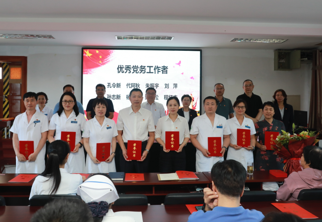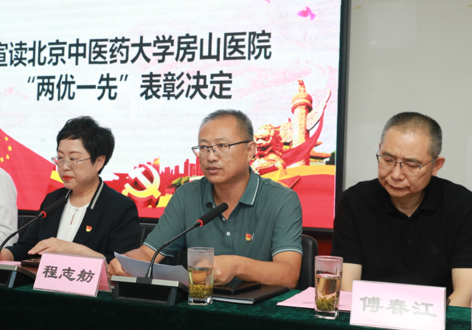 纪委书记程志舫宣读北京中医药大学房山医院党委《关于表彰2023-2024年优秀共产党员、优秀党务工作者、先进党支部的决定》。王伟等30名优秀共产党员、孔令新等8名优秀党务工作者、内科第一党支部等9个先进党支部受到表彰。
