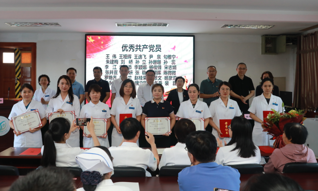 院领导为优秀共产党员、优秀党务工作者、先进党支部颁发荣誉证书和奖牌;表彰大会上,热烈掌声响起,表达了对受表彰的优秀个人和先进集体的敬意与期望。