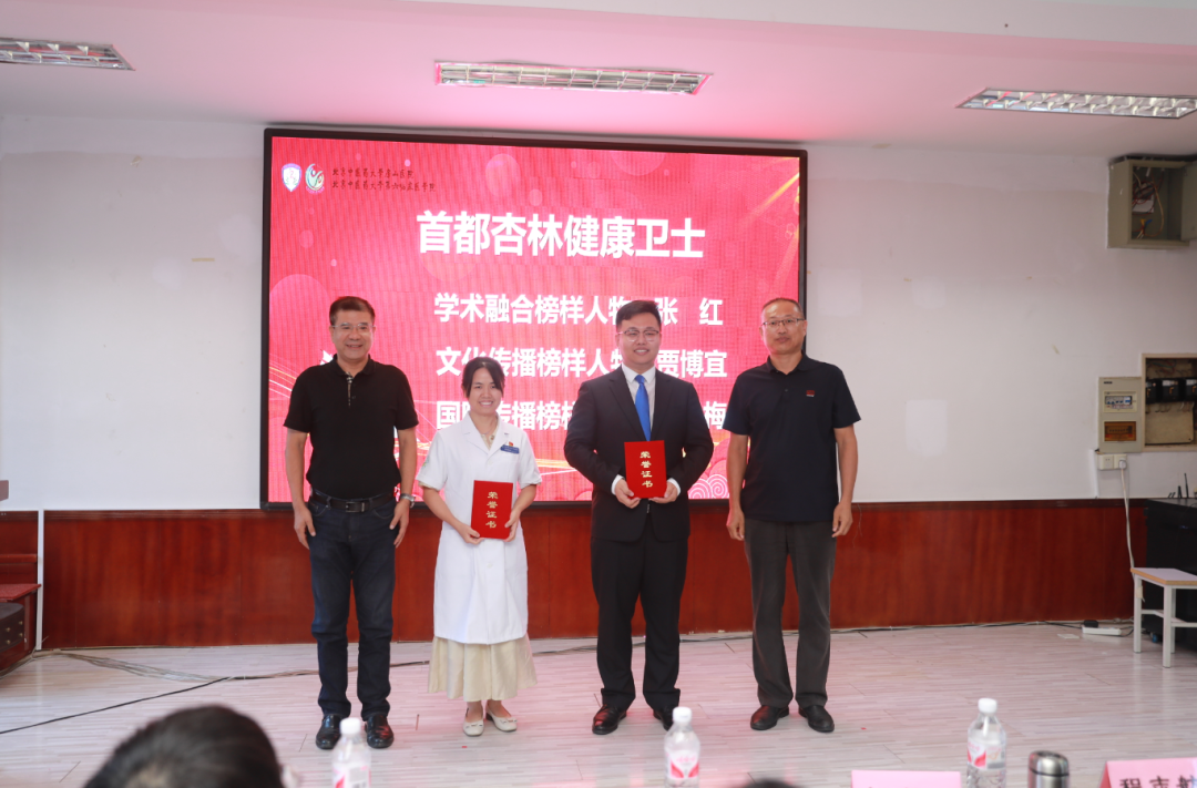 首都杏林健康卫士榜样人物代表彭艳梅、第二届房山好医生代表王艳云和院级优秀医师代表蔡冬燕分享了从医的心路历程,表示要以更加精湛的医术、更加贴心的服务、为人民的健康保驾护航。