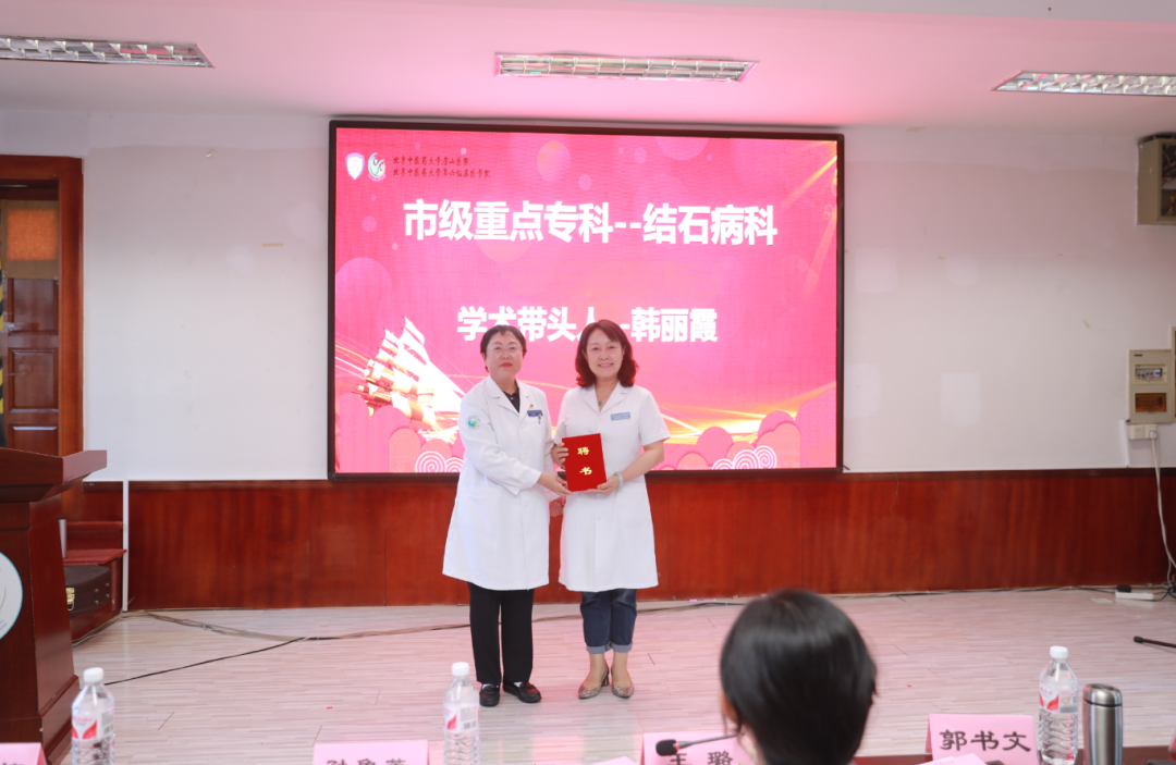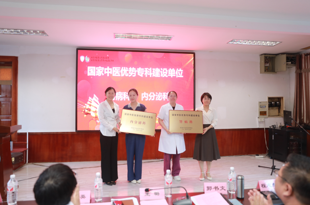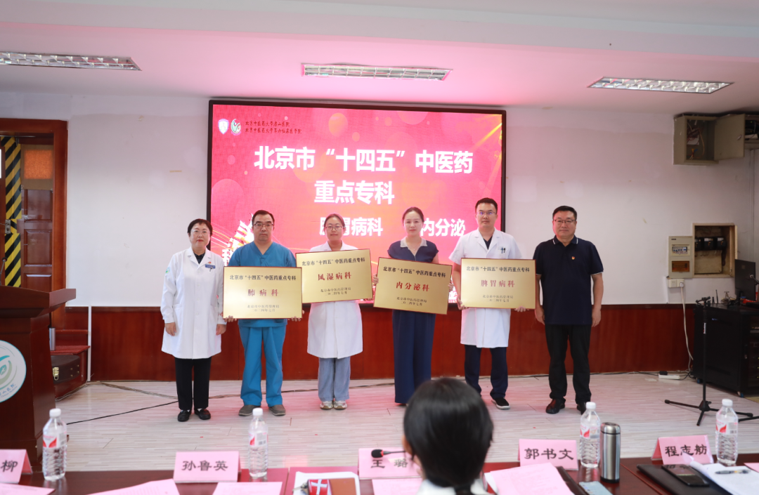 今年5月,肾病科、内分泌科凭借鲜明的中医特色、卓越的临床疗效、深厚的学术底蕴,成功入选国家中医优势专科建设单位,实现医院建院40余年以来“国字号”专科零突破。7月,脾胃病科、内分泌科、肺病科、风湿病科等4个科室,成功入选北京市第二批“十四五”中医药重点专科,专科矩阵再添新。房山区卫生健康委王璐副主任、赵月科长为国家中医优势专科建设单位授牌。郭书文书记、孙鲁英院长为北京市第二批“十四五”中医药重点专科授牌。为韩臣子全国基层名老中医药专家传承工作室负责人韩丽霞同志颁发重点专科结石病科学术带头人聘书。
