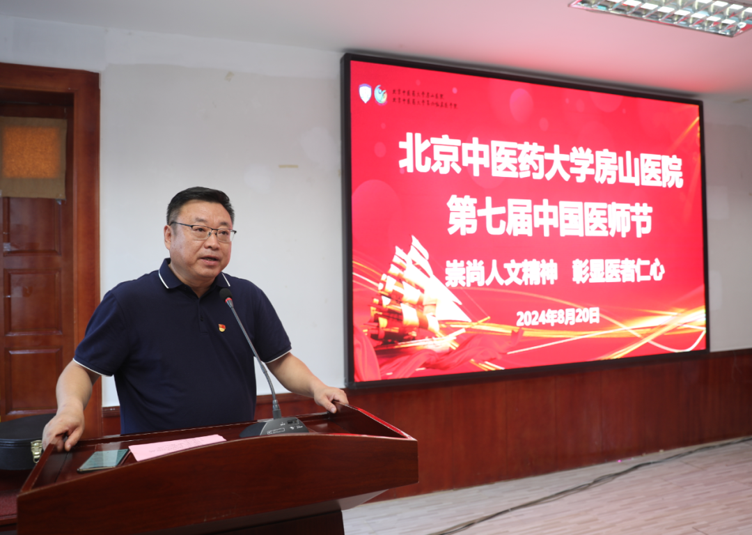 北京市房山区卫生健康委王璐副主任做总结发言:对我院近年来获得的成绩给予肯定,对各级获奖医师进行表彰,妙手仁心泽天下,厚德载物济苍生,感谢医师们以仁心仁术护佑生命,以至精至诚守护健康。并转达了王耕主任对全体医师的寄语:我们要认真学习贯彻党的二十届三中全会精神,进一步铭记为医初心,不忘誓言,争当群众生命健康的守护者;进一步坚定医者恒心,严谨求实,争当群众信服的大医生;进一步砥砺医者匠心,奋发有为,争当医疗卫生事业高质量发展的排头兵!继续深入扎实开展好“医德医风大讨论”活动,全力建设“零投诉医院”,用心用情用力当好群众健康的“守门人”。